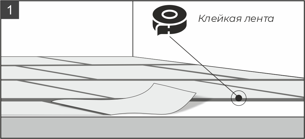 7.1. Подложка укладывается встык и закрепляется при помощи клейкой ленты по всей длине стыка (рис. 1).